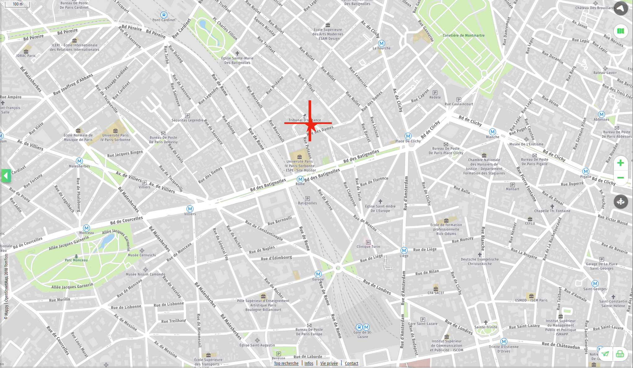 Arriver par la rue de Rome ou la rue Boursault, tourner vers l’Est, dans la rue des Dames, puis tournez à gauche dans la rue Mariotte (dont le sens a été inversé). Elle débouche rue des Batignolles, face au Parking de la Mairie.